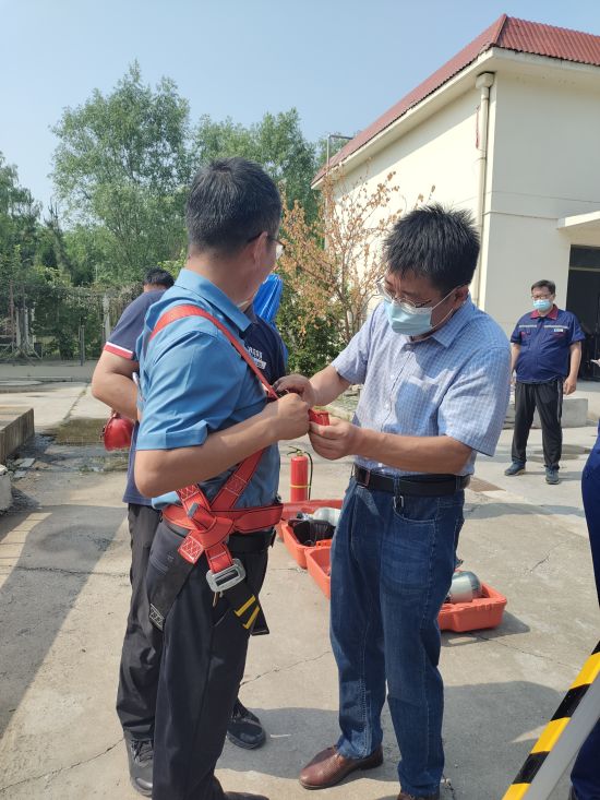 6月17日上午,逸涇水務(wù)公司在4#污水泵站參加市城鄉(xiāng)水務(wù)發(fā)展中心消防演練活動(dòng),本次演練特邀濱州市消防救援支隊(duì)二級(jí)消防士張寶寶和張政進(jìn)行現(xiàn)場(chǎng)指導(dǎo)示范,對(duì)安全帶、救援三腳架、正壓式呼吸機(jī)、干粉滅火器等裝備器材的正確操作進(jìn)行了詳細(xì)講解。